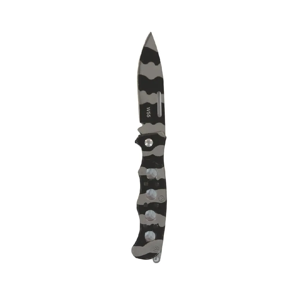 Нож складной отличного качества, ручка серого цвета, лезвие черного.